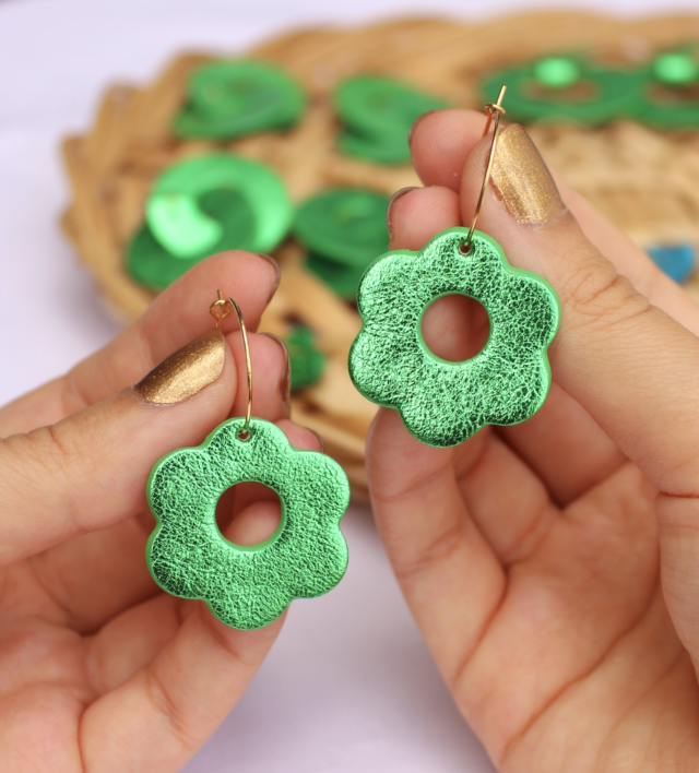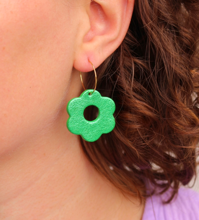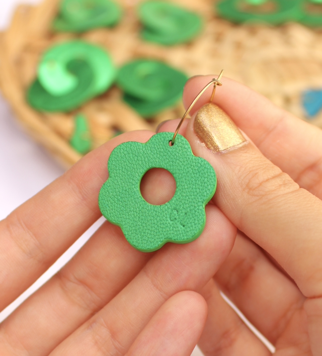 ♻️ Matériaux : cuir revalorisé et acier inoxydable (créoles fines disponibles en argenté sur demande)