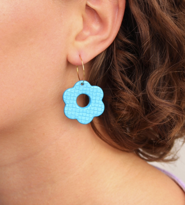 ♻️ Matériaux : cuir revalorisé et acier inoxydable (créoles fines disponibles en argenté sur demande)